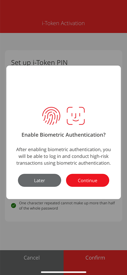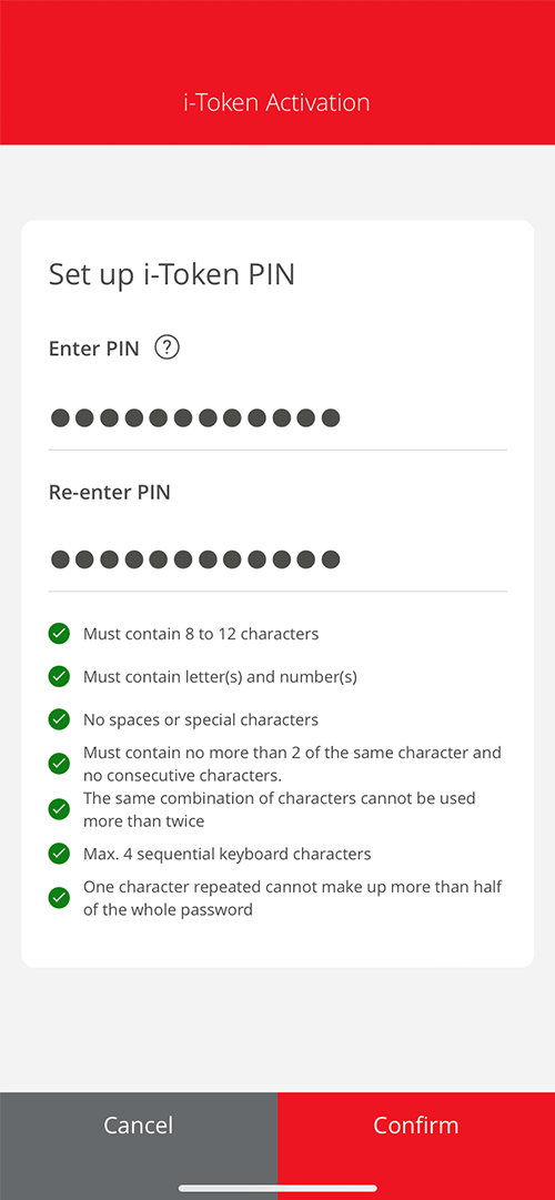 Set up your i-Token PIN and select "Confirm" -